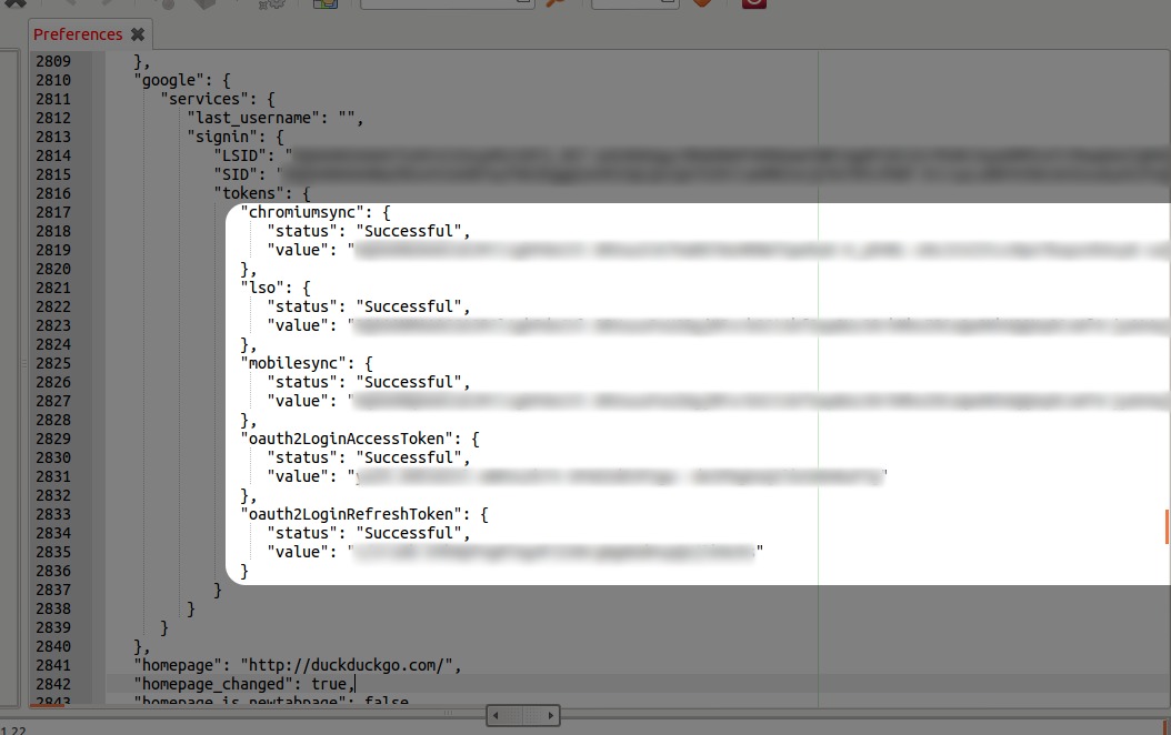 E così via. Mi è bastato chiudere Chrome, cancellare il contenuto del campo tokens (prestando attenzione a lasciare le parentesi bilanciate) e lanciare il browser ed ho potuto rieffettuare il login.