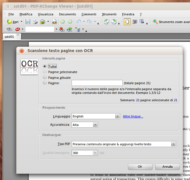 In entrambi i casi, il vostro scopo è ottenere un documento il cui aspetto esteriore sia lo stesso (quindi mantenendo le immagini) ma che sia ricercabile. Ciò viene realizzato da software appositi che creano un livello trasparente con del “vero testo” usando le tecniche OCR. Il risultato non sempre è perfetto, ma sicuramente è molto meglio di avere documenti totalmente non ricercabili. Ci sono alcune guide e script in merito, nonché un live CD nato per fare solo questo.