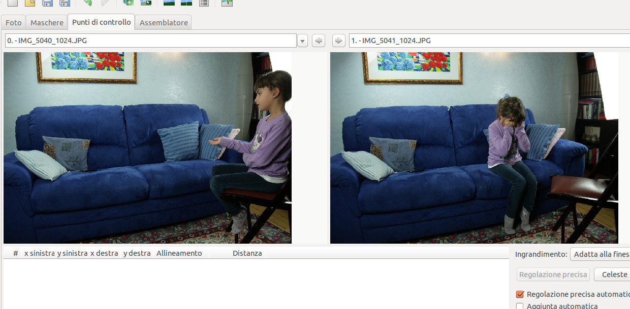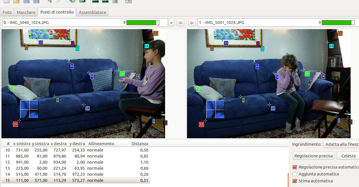- molti punti migliorano il risultato, io ne ho usati 15-18 per ciascuna foto da unire